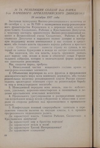Резолюция солдат 2-го парка 5-го паркового артиллерийского дивизиона. 28 октября 1917 года