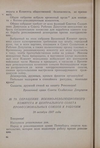 Обращение Военно-революционного комитета и Центрального совета профессиональных союзов к рабочим. 28 октября 1917 года