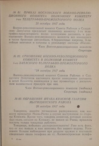 Документы великой пролетарской революции. Т. 2. Из протоколов и переписки Московского и районных военно-революционных комитетов 1917 года. — М.: Моск. рабочий, 1948.