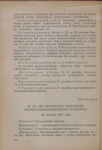 Из протокола заседания Военно-революционного комитета. 30 октября 1...