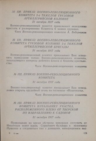Приказ Военно-революционного комитета начальнику участка, расположенного влево от Тверской по направлению к Садовой. 31 октября 1917 года