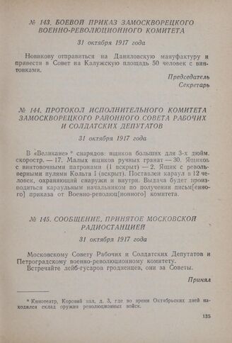 Документы великой пролетарской революции. Т. 2. Из протоколов и переписки Московского и районных военно-революционных комитетов 1917 года. — М.: Моск. рабочий, 1948.