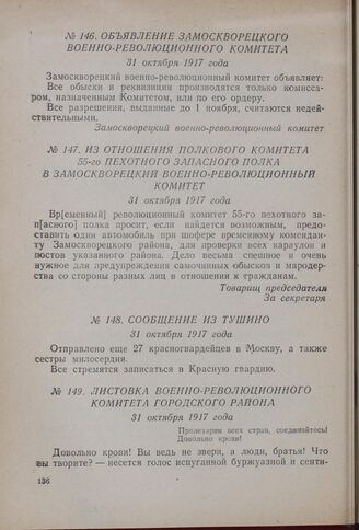 Объявление Замоскворецкого Военно-революционного комитета. 31 октяб...