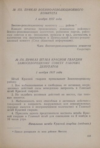 Приказ штаба Красной гвардии Замоскворецкому совету рабочих депутатов. 1 ноября 1917 года