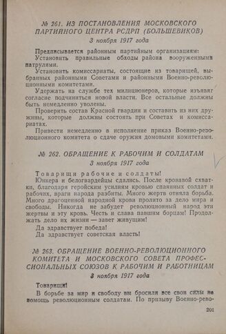 Обращение к рабочим и солдатам. 3 ноября 1917 года // «Известия 'Московского Совета Рабочих Депутатов» № 1 от 3 ноября 1917 г.
