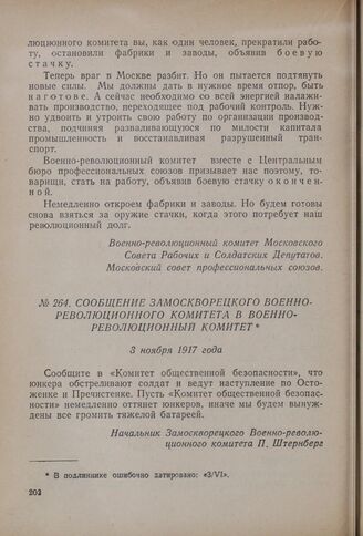 Сообщение Замоскворецкого Военно-революционного комитета в Военно-р...