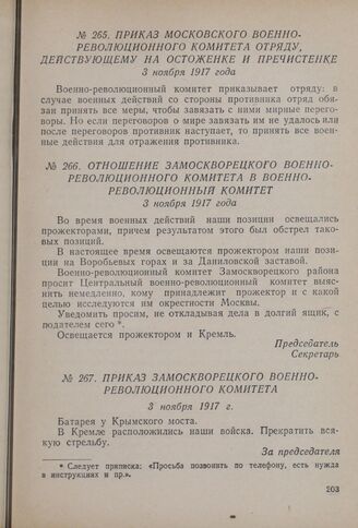 Приказ Московского Военно-революционного комитета отряду, действующему на Остоженке и Пречистенке. 3 ноября 1917 года