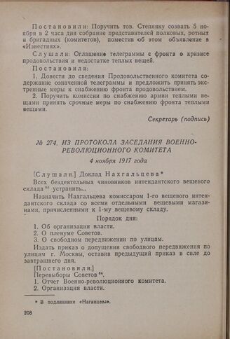 Из протокола Военно-революционного комитета. 4 ноября 1917 года [1]
