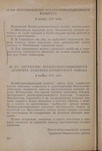 Обращение Военно-революционного комитета Сущевско-Марьинского района. 4 ноября 1917 года // «Социал-Демократ» № 200 от 4 ноября 1917 г.