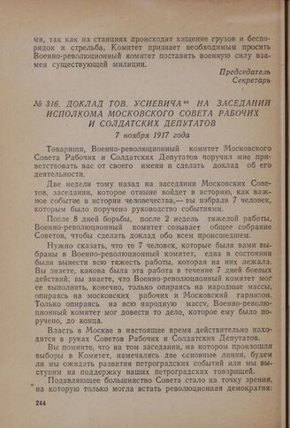Доклад тов. Усиевича на заседании Исполкома Московского совета рабочих и солдатских депутатов. 7 ноября 1917 года