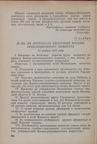 Из протокола заседания Военно-революционного комитета. 11 ноября 1917 года
