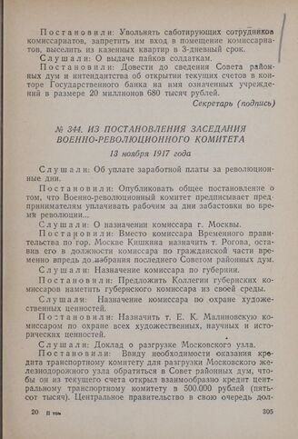 Из постановления заседания Военно-революционного комитета. 13 ноября 1917 года // ЦАОР, ф. 1, д. № 617/20, л. 1-3.