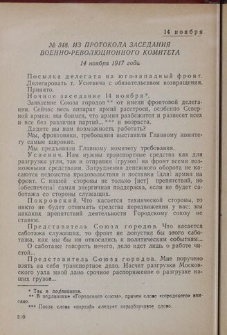 Из протокола заседания Военно-революционного комитета. 14 ноября 1917 года // ЦАОР, ф. 1, д. № 606/9, л. 1-6.