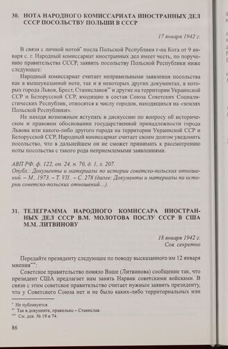 Телеграмма народного комиссара иностранных дел СССР В.М. Молотова послу СССР в США М.М. Литвинову. 18 января 1942 г. // АВП РФ, ф. 059, оп. 1, п. 369, д. 2510, л. 23. Опубл.: Советско-американские отношения ... — Т 1. — С. 148-149.