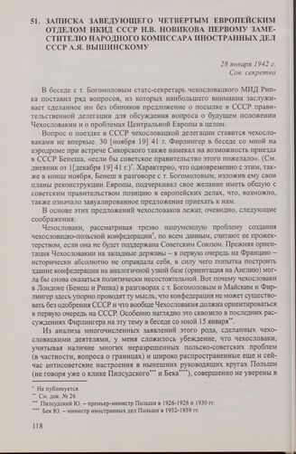 Записка заведующего Четвертым Европейским отделом НКИД СССР Н.В. Новикова первому заместителю народного комиссара иностранных дел СССР А.Я. Вышинскому. 28 января 1942 г. // АВП РФ, ф. 0138, оп. 25, п. 131, д. 6, л. 9-12.