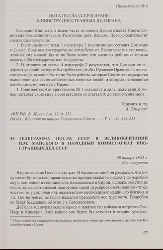 Приложение к договору о союзе между СССР, Великобританией и Ираном от 29 января 1942 г. Нота посла СССР в Иране министру иностранных дел Ирана