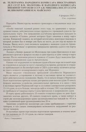Телеграмма народного комиссара иностранных дел СССР В.М. Молотова и народного комиссара внешней торговли СССР А.И. Микояна послу СССР в Великобритании И.М. Майскому. 8 февраля 1942 г. // АВП РФ, ф. 059, оп. 1, п. 373, д. 2540, л. 63-65. Опубл.: Советско-английские отношения ... — Т. 1. — С. 205-207.