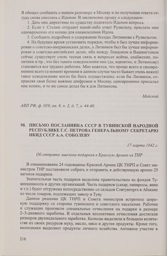 Письмо посланника СССР в Тувинской Народной Республике Г.С. Петрова генеральному секретарю НКИД СССР А.А. Соболеву. 17 марта 1942 г. // АВП РФ, ф. 0153, оп. 19, п. 134, д. 21, л. 17-18.