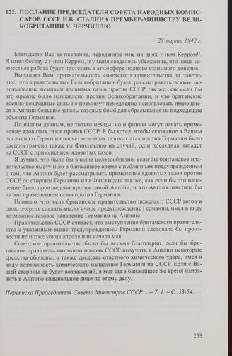 Послание председателя Совета народных комиссаров СССР И.В. Сталина премьер-министру Великобритании У. Черчиллю. 29 марта 1942 г. // Переписка Председателя Совета Министров СССР ... — Т. 1. — С. 53-54.