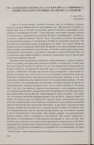 Запись беседы посла СССР в Иране А.А. Смирнова с министром иностранных дел Ирана А. Сохейли. 2 мая 1942 г. // АВП РФ, ф. 06, оп. 4, п. 17, д. 180, л. 92-94.