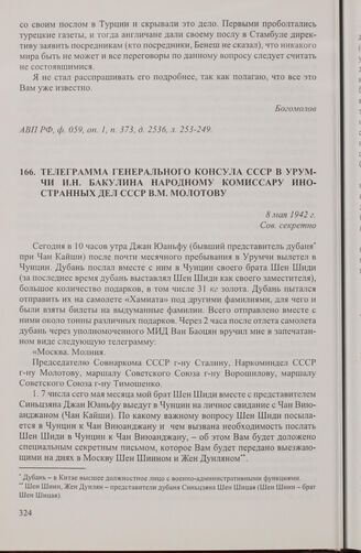 Главная Документы внешней политики СССР Документы внешней политики СССР. Т. XXV. 2 января-30 декабря 1942 г... Телеграмма генерального консула СССР в Урумчи И.Н. Бакулина народно...
