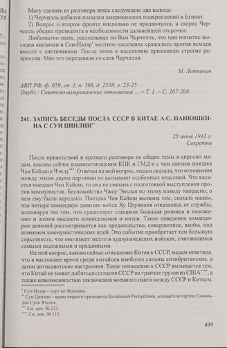 Запись беседы посла СССР в Китае А.С. Панюшкина с Сун Цинлин. 25 ию...