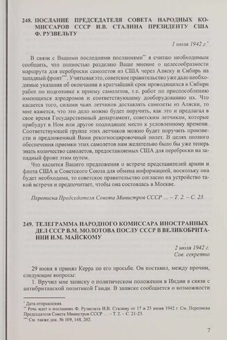 Телеграмма народного комиссара иностранных дел СССР В.М. Молотова послу СССР в Великобритании И.М. Майскому. 2 июля 1942 г. // АВП РФ, ф. 059, оп. 1, п. 374, д. 2542, л. 11.