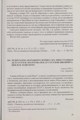 Главная Документы внешней политики СССР Документы внешней политики СССР. Т. XXV. 2 января-30 декабря 1942 г... Телеграмма народного комиссара иностранных дел СССР В.М. Молотова п...