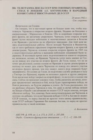 Главная Документы внешней политики СССР Документы внешней политики СССР. Т. XXV. 2 января-30 декабря 1942 г... Телеграмма посла СССР при союзных правительствах в Лондоне А.Е. Бог...