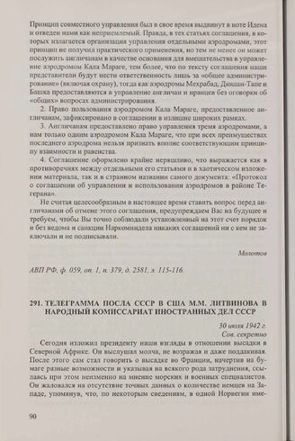 Телеграмма посла СССР в США М.М. Литвинова в Народный комиссариат иностранных дел СССР. 30 июля 1942 г. // АВП РФ, ф. 059, оп. 1, п. 368, д. 2508, л. 144-146. Опубл.: Советско-американские отношения ... — Т. 1. — С. 220-221.