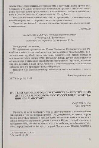 Телеграмма народного комиссара иностранных дел СССР В.М. Молотова послу СССР в Великобритании И.М. Майскому. 2 августа 1942 г. // АВП РФ, ф. 059, оп. 1, п. 374, д. 2542, л. 63.