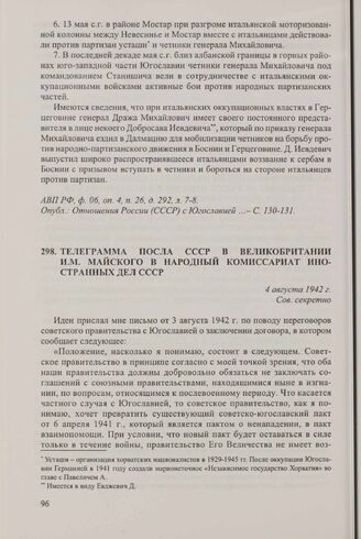Телеграмма посла СССР в Великобритании И.М. Майского в Народный комиссариат иностранных дел СССР. 4 августа 1942 г. // АВП РФ, ф. 059, оп. 1, п. 372, д. 2530, л. 182-184. Опубл.: Советско-английские отношения ... — Т. 1. — С. 261-262.