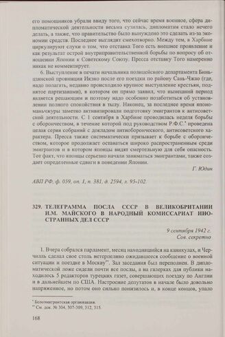 Телеграмма посла СССР в Великобритании И.М. Майского в Народный комиссариат иностранных дел СССР. 9 сентября 1942 г.