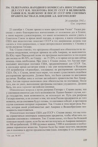 Телеграмма народного комиссара иностранных дел СССР В.М. Молотова послу СССР в Великобритании И.М. Майскому и послу СССР при союзных правительствах в Лондоне А.Е. Богомолову. 26 сентября 1942 г.