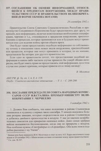 Соглашение об обмене информацией, относящейся к предметам вооружения, между правительством СССР и правительством Великобритании (в форме обмена нотами). 29 сентября 1942 г. // АВП РФ, ф. 3а, оп. 1, п. 8, д. 118. Опубл.: Советско-английские отношения ... — Т. 1. — С. 289-290.