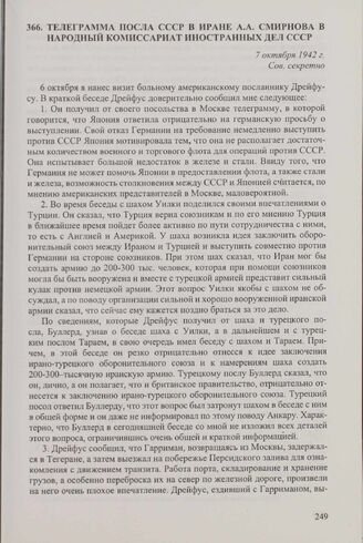 Главная Документы внешней политики СССР Документы внешней политики СССР. Т. XXV. 2 января-30 декабря 1942 г... Телеграмма посла СССР в Иране А.А. Смирнова в Народный комиссариат ...