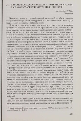 Письмо посла СССР в США М.М. Литвинова в Народный комиссариат иностранных дел СССР. 13 октября 1942 г.