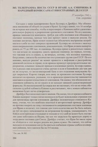 Телеграмма посла СССР в Иране А.А. Смирнова в Народный комиссариат иностранных дел СССР. 17 октября 1942 г. [2] // АВП РФ, ф. 059, оп. 1, п. 378, д. 2577, л. 242-240.