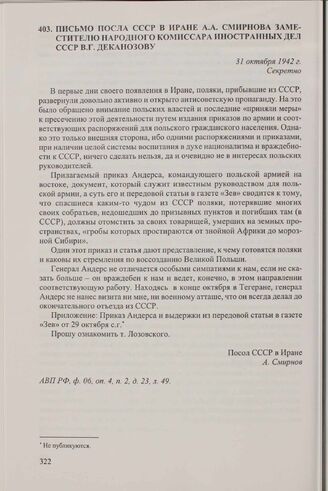 Главная Документы внешней политики СССР Документы внешней политики СССР. Т. XXV. 2 января-30 декабря 1942 г... Письмо посла СССР в Иране А.А. Смирнова заместителю народного комис...
