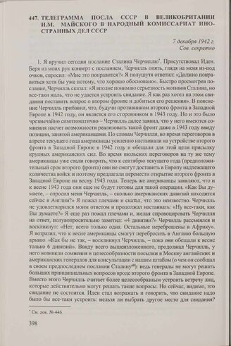 Главная Документы внешней политики СССР Документы внешней политики СССР. Т. XXV. 2 января-30 декабря 1942 г... Телеграмма посла СССР в Великобритании И.М. Майского в Народный ком...
