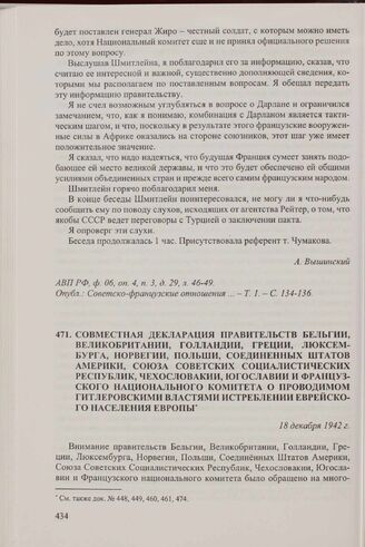 Совместная Декларация правительств Бельгии, Великобритании, Голландии, Греции, Люксембурга, Норвегии, Польши, Соединенных Штатов Америки, Союза Советских Социалистических Республик, Чехословакии, Югославии и Французского национального комитета о проводимом гитлеровскими властями истреблении еврейского населения Европы. 18 декабря 1942 г. // Известия. — 1942. —18 дек.