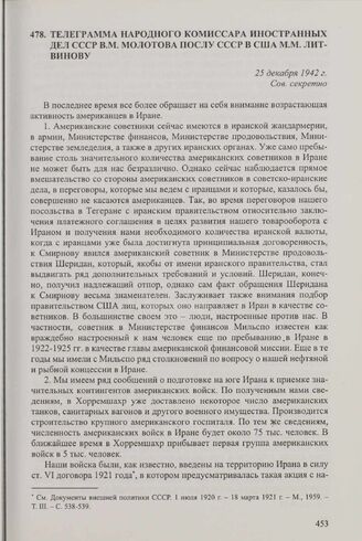 Телеграмма народного комиссара иностранных дел СССР В.М. Молотова послу СССР в США М.М. Литвинову. 25 декабря 1942 г. // АВП РФ, ф. 059, оп. 1, п. 369, д. 2513, л. 135-137.