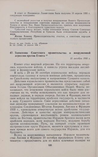 Заявление Советского правительства о вооруженной агрессии против Египта. 31 октября 1956 г.