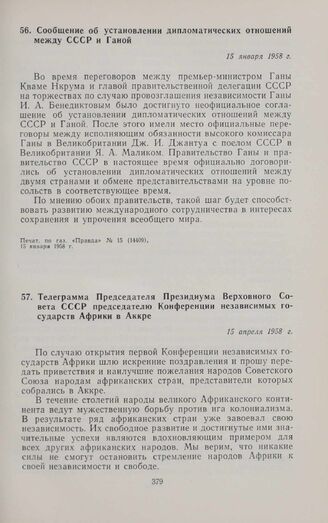 Главная СССР и страны Африки СССР и страны Африки. 1946-1962 гг. В 2 т. Т. 1. (1946 г.-сентябрь ... Документы Телеграмма Председателя Президиума Верховного Совета СССР председат...