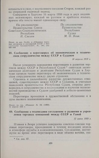 Сообщение о подписании соглашения о развитии и укреплении торговых отношений между СССР и Ганой. 12 июня 1959 г.