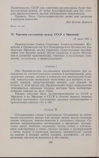 Торговое соглашение между СССР и Эфиопией. 11 июля 1959 г.