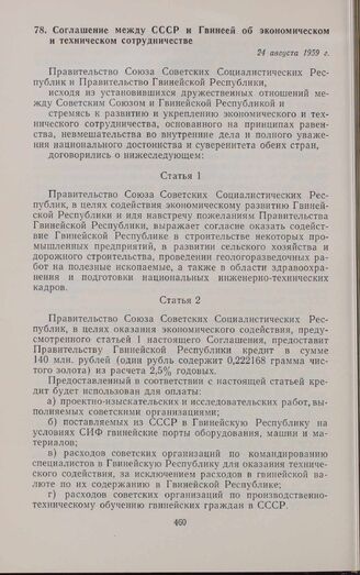 Соглашение между СССР и Гвинеей об экономическом и техническом сотрудничестве. 24 августа 1959 г. // Печат. по арх.