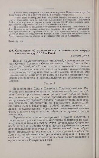 Соглашение об экономическом и техническом сотрудничестве между СССР и Ганой. 4 августа 1960 г.