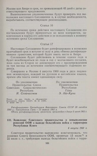 Заявление Советского правительства о невыполнении решений ООН о выводе бельгийских войск с территории Республики Конго. 6 августа 1960 г.
