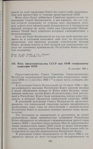 Нота представительства СССР при ООН генеральному секретарю ООН. 10 сентября 1960 г. // Печат. по арх. Опубл. в газ. «Правда», № 255 (15379), 11 сентября 1960 г.